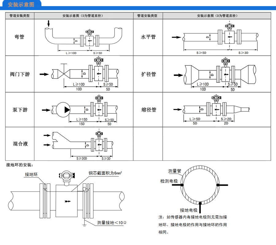 ◆可水平、垂直、傾斜方式安裝,只要保證測量管內(nèi)充滿液體和沒氣泡即可。